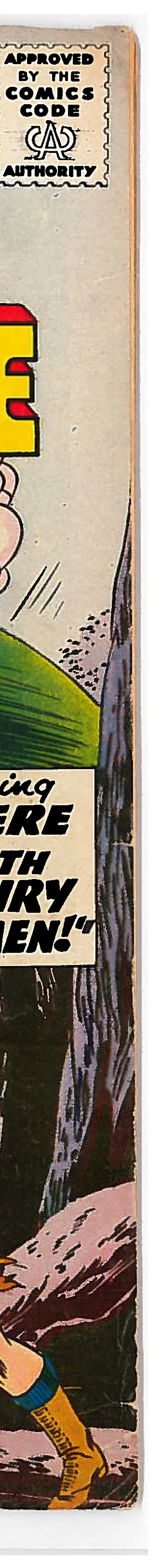My Greatest Adventure (1955) #27 VG/FN, Dinosaur cover. Professionally graded. Pages are off-white with light tanning at the edges, supple and in excellent condition, center page firmly attached. Spine wear, tiny chip at top of spine, ~1/4 inch split and small chip at bottom of spine, light “5” written in blue above “RE”, bends and tiny tears along top edge, crease at top right corner, finger bends and small closed tear in right edge, creasing at bottom right corner, finger bends in bottom edge (see scans).Scans are of the actual item.