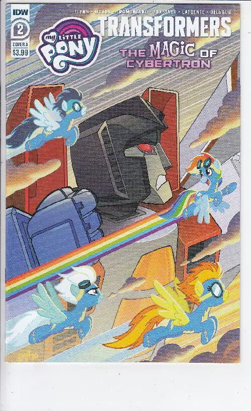 Grade: 9.2 Near Mint-My little pony transformers ii (2021 idw) #2 cvr a tony fleecs item number: cxwh-r10765 the seekers and the wonderbolts have formed an uneasy alliance-can starscream and rainbow dash work together to stop the evil attacking cybertron?! Plus, applejack and wildwheel come face-to-face in a wild, wild showdown for the ages!