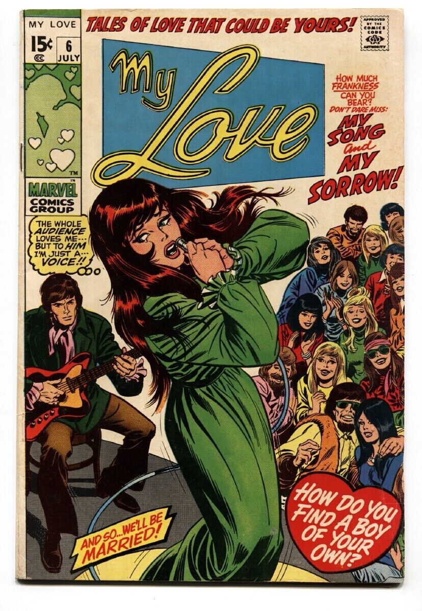 Grade: FNMy Love #6 1970-Marvel-Dick Ayers-Sal &John Buscema-Gene Colan-fn -Art by John & Sal Buscema, Gene Colan, and Dick Ayers -Nice tight flat copy. Cover loose at bottom staple. Grade: FN SKU: LI-72-035