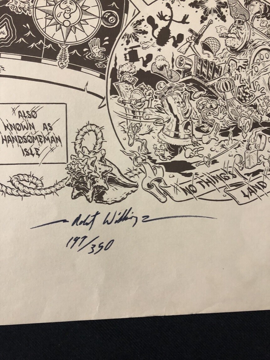 Mystery Map of Assinine Atoll Signed Poster Robt Williams Measures about 24" x 18.5". Has many crease lines and some tears and holes from years of improper storage. Signed by Robt Williams. Numbered 147/350. Grade: ... Read More