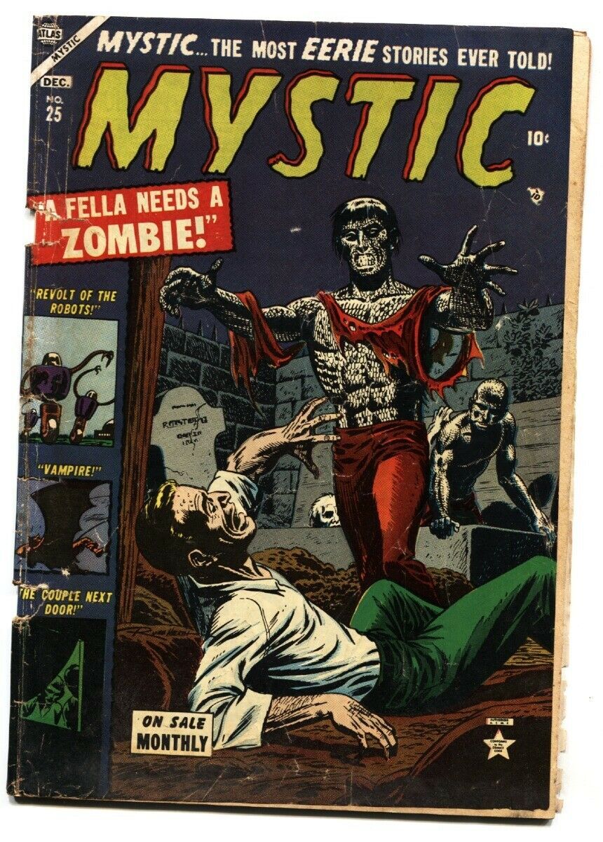 Mystic Issue: 25 / Year: 1953 Condition: G+ZOMBIE cover. Vampires. Violence. Spine wear, pulls at staple but still attached, complete, no restoration. Publisher: AtlasSku: LI-52-194 Over 100,000 mail orders processed! Buy with confidence. Track Page Views WithAuctiva's FREE Counter