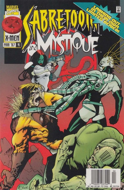 Item: Mystique And Sabretooth #4 (Newsstand) | Publisher: Marvel | Cover Date: March 1997 | Writer: Jorge González | Artist: Ariel Olivetti | Cover Artist: Ariel Olivetti | Appearances: Sabretooth, Mystique | Storyl ... Read More