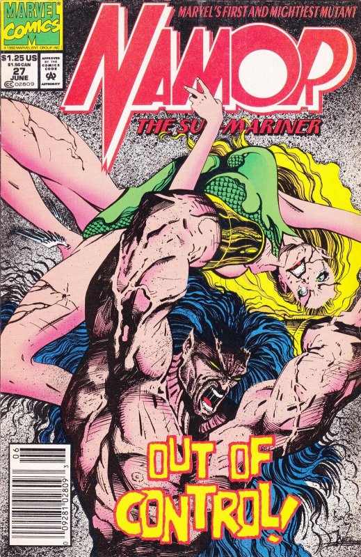 Item: Namor, The Sub-Mariner #27 (Newsstand) | Publisher: Marvel | Cover Date: June 1992 | Writer: John Byrne, Joey Cavalieri | Artist: Jae Lee | Cover Artist: Jae Lee | Appearances: Sub-Mariner, Namorita, Spitfire, ... Read More