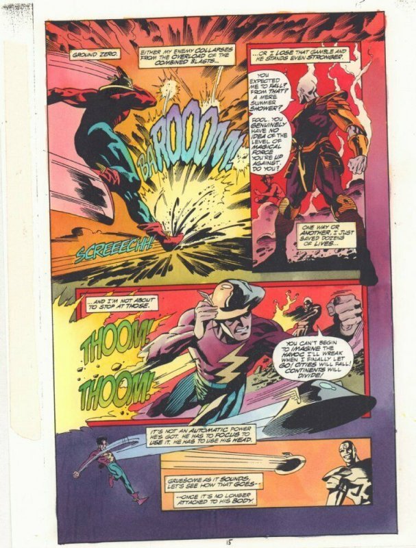 National Comics #1 p.15 Color Guide Art - Flash Jay Garrick Action - 1999Aaron Lopresti allJohn Kalisz painter"This is a B&W STAT photo copy that the colorist, John Kalisz, painted over to create the published page. ... Read More