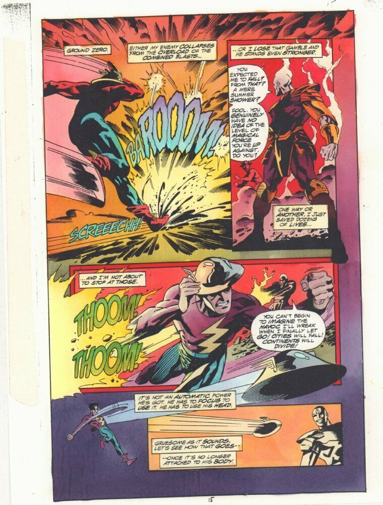 National Comics #1 p.15 Color Guide Art - Flash Jay Garrick Action - 1999Aaron Lopresti allJohn Kalisz painter"This is a B&W STAT photo copy that the colorist, John Kalisz, painted over to create the published page. This is color art only, the original pencils and inks aren't on here." 9.5" x 11" with some moderate wear along the edges.This item was uploaded by Bobby.If you have any specific questions or requests, please ask us prior to ordering and we'll get back to you as soon as we can. If there are any problems with your order whatsoever, please message us before leaving feedback and we'll be happy to work with you to fix the situation!We ship worldwide, combine purchases, and charge exact shipping. The price may vary based on size, weight, and location. If you are automatically overcharged for shipping, message us and we'll be happy to revise the invoice or refund you the excess amount. If you have any questions regarding shipping, please message us.International Buyers - Please Note: Import duties, taxes, and charges are not included in the item price or shipping cost. These charges are the buyer's responsibility. Please check with your country's customs office to determine what these additional costs will be prior to bidding or buying. Payment can be made by PayPal and credit cards directly. 120,000+ items in total in my Hip store! Frequently Asked Questions: When are your operation hours?Our in office hours are Monday - Friday, 11 am - 8 pm. We are not open on weekends, so if you send us a request on Friday evening we won't get back to you until Monday afternoon. Please don't take it as us ignoring you! We will work on your request Monday and get back to you as soon as we can. Also, if you order from us on a Friday evening or Saturday morning we won't start processing your order until we open on Monday. That means on Monday it will be pulled and prepped for shipping, then picked up by the postman on Tuesday morning.When will you ship my item? The tracking hasn't moved.We realize you're eager to get your item, so if the tracking hasn't moved in a few days please don't be concerned. We give the postman a lot of packages daily, sometimes as many as 100, so he does not scan each item for us upon pickup as he says it would be too time consuming for him to do so. If you get a tracking number from us, that almost always means your item was picked up by the postman the next business day. The USPS is also imperfect. There are times when the tracking won't even show movement until it's in your area's regional distribution center. This is normal in our experience. Is this original artwork? Yes! I am a professional comic book art dealer with 20+ years experience. The image pictured is one of a kind original artwork unless otherwise described. Can you issue a COA? We can, upon request. Please make sure you leave us a note while checking out and shoot us a message immediately after requesting one, just to be sure. What is your base shipping for art? $10 for Domestic, International varies depending on location. Please use Hip's shipping calculator for specifics. How do you ship comics?We ship in rigid cardboard mailers to protect your comic book from the worst the mail system has to offer. Price varies based on the number of books you purchase, but we try to keep costs as low as we can and charge exact shipping. If it looks unusually high to you please send us a message and we'll be happy to double check for you. What is your base shipping for CGC comics? Domestic for CGCs are $10 for the first and $5 for each additional one you add. Do you combine shipping? Yes, of like items. Such as: several comics can fit in one cardboard mailer, as can more than one record. Multiple art pages can easily be combined because they are light and thin. Where combined shipping differs is with size and weight. For instance, two statues require a much bigger box. Same goes for CGCs, as the package gets bigger and heavier as you go. Do you ship well? I've had some bad experiences... You needn't worry; we are professionals who value your business and want your item to arrive safely as much as you do. I have been collecting for over 30 years. I send out items the way I would like to receive them. The tracking says my item is "OUT FOR DELIVERY" in New Jersey. Why is that?If the tracking indicates that the item is "OUT FOR DELIVERY" in NJ don't worry, it's just what the tracking says when it's carried over from the postman to the sorting center. This is normal for our Post Office and will not impact you receiving your item in a timely matter.Have these CGCs had any previous owners? No. I have personally sent in almost all of these to CGC and had them returned to me, offering them fresh to the market for the 1st time. I changed my mind after successfully winning the auction or fixed price listing, will you cancel the transaction? Please only bid or hit BUY IT NOW if you are willing to follow through and pay for the item, we will not cancel the transaction. As a seller, Hip penalizes us every time we cancel an order, so it is detrimental to our business to do so. Therefore if you will not pay, then you'll have to let Hip cycle this to an "unpaid item" and accept whatever action Hip deems necessary. 120,000+ items in total in my Hip store! MEET OUR STAFF: Pictured left to right, my employees: Bobby, Justin, Mario V., Connelly, Mario B., Alejandro, Sumie, and Anthony.AS SEEN ON TV : I have been buying and selling artwork and comics for about 20 years. If you are new to buying art or comics feel free to ask any questions that you may have. 120,000+ items in total in my Hip store! Small, Regular, and Large Portfolios available; see my Hip store!