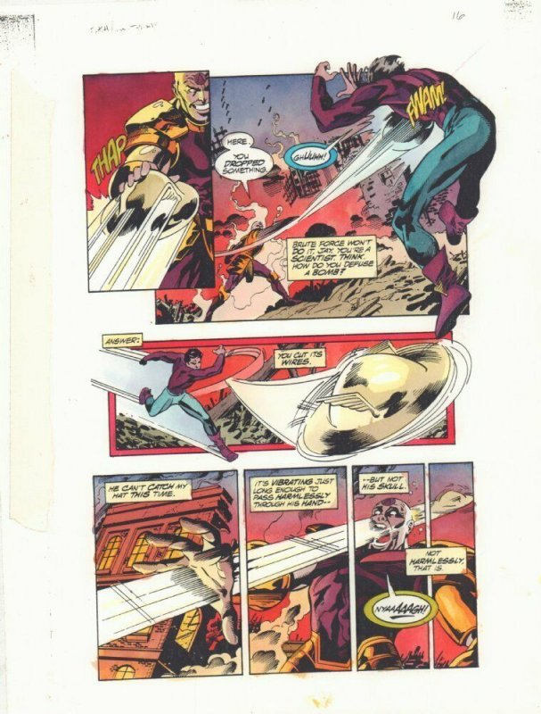 National Comics #1 p.16 Color Guide Art - Flash Jay Garrick Action - 1999Aaron Lopresti allJohn Kalisz painter"This is a B&W STAT photo copy that the colorist, John Kalisz, painted over to create the published page. ... Read More