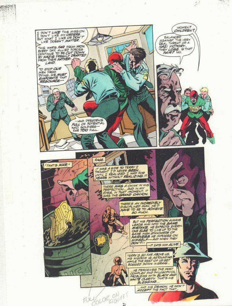 National Comics #1 p.21 Color Guide Art - Flash Jay Garrick and Mister Terrific in Alley - 1999Aaron Lopresti allJohn Kalisz painter"This is a B&W STAT photo copy that the colorist, John Kalisz, painted over to crea ... Read More