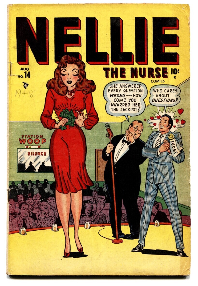 Grade: VG+Nellie the nurse #14 1948-timely-patsy walker-good girl art -loaded with good girl art, classic poses -patsy walker appears -namora ad. -harvey kurtzman art -captain tootsie by c c beach grade: vg+ sku: dhv-07-187