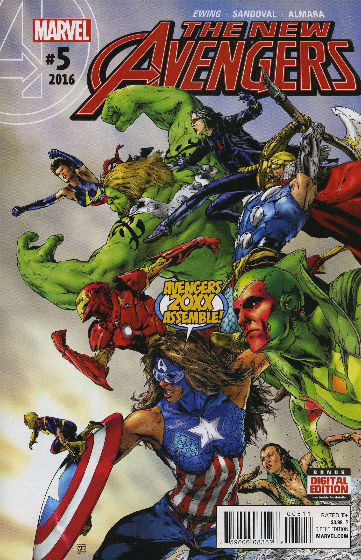 Item: New Avengers (4th Series) #5 | Publisher: Marvel | Cover Date: March 2016 | Writer: Al Ewing | Artist: Gerardo Sandoval | Cover Artist: Gerardo Sandoval | Appearances: A.I.M., Toni Ho, Sunspot, New Avengers, Demiurge (Billy Kaplan), Hawkeye, Hulkling, Pod, Power Man (Victor Alvarez), Songbird, Squirrel Girl, Tippy-Toe, White Tiger (Ava Ayala), Avengers (Earth-15061), Captain America (Dani Cage), Collapsar (Manu Chauhan), Iron Mariner (Jako Krangsen), King Hulk (Teddy Altman), Madame Natasha Romanova, Marvel Woman (Marlene Brashear), Namorina (Dorma McKenzie), Thor, Vision (Victor Shade), Moridun, W.H.I.S.P.E.R., Maker, O.M.N.I.T.R.O.N.I.C.U.S. | Storylines: Don’t They Know…It’s the End of the World? | Notes: 1st appearance of O.M.N.I.T.R.O.N.I.C.U.S. as City | With Economy shipping, each additional comic ships for just 50 cents more to customers in the USA. This listing contains a stock photo and information from ComicBase™ and © Human Computing. The stock photo is for reference only. If you would like to see a photo of the actual item, please message us prior to purchasing.Seller Information