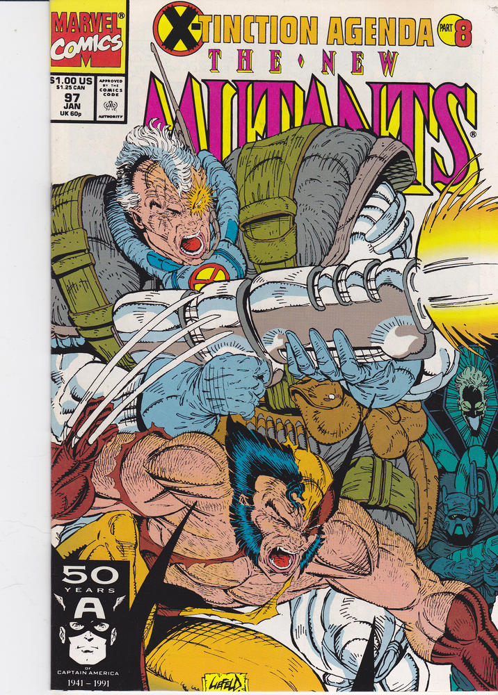 New Mutants #97 by Marvel Comics copyright 1990. I have graded the comic book, using the Overstreet Grading Guide, at FINE/VERY FINE with the the following defects: Light stress marks along the spine. The corners are rounded. There is some light yellowing of the pages.