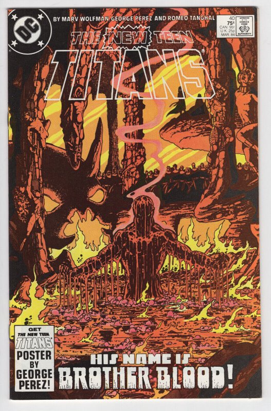 NEW TEEN TITANS #40 - 7.5, WP - Brother Blood - Last Issue