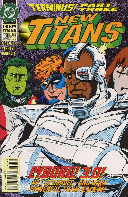 Item: New Titans, The #106 | Publisher: DC | Cover Date: January 1994 | Writer: Marv Wolfman | Artist: Mark Tenney | Cover Artist: Nickpolitano | Storylines: Terminus: The Fate of Cyborg, Part 3; Rebirth | With Econ ... Read More