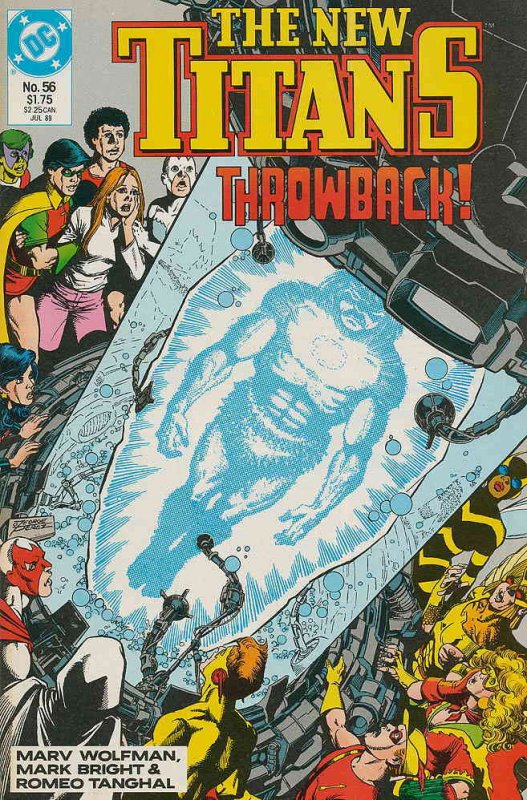 Item: New Titans, The #56 | Publisher: DC | Cover Date: July 1989 | Writer: Marv Wolfman, George Pérez | Artist: Mark D. Bright | Cover Artist: George Pérez | Appearances: Gnaark | Storylines: More Than Human! | With Economy shipping, each additional comic ships for just 50 cents more to customers in the USA. This listing contains a stock photo and information from ComicBase™ and © Human Computing. The stock photo is for reference only. If you would like to see a photo of the actual item, please message us prior to purchasing.Seller Information