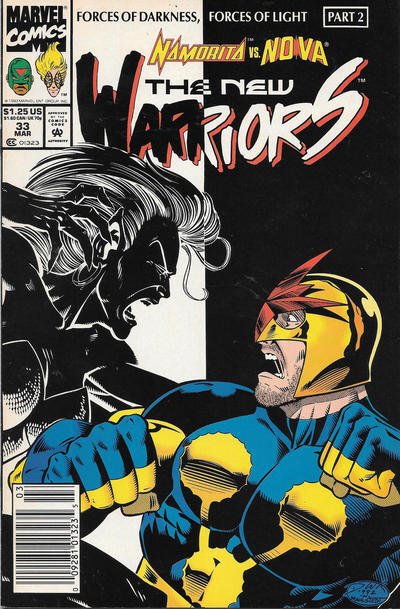 Item: New Warriors, The #33 (Newsstand) | Publisher: Marvel | Cover Date: March 1993 | Writer: Fabian Nicieza | Artist: Darick Robertson | Cover Artist: Darick Robertson | Appearances: Turbo (Mike Jeffries), Turbo II (Mike Jeffries) | Storylines: Forces of Light, Part 2; Forces of Darkness, Forces of Light, Part | Notes: 1st Appearance of Turbo (Mike Jeffries); newsstand edition | With Economy shipping, each additional comic ships for just 50 cents more to customers in the USA. This listing contains a stock photo and information from ComicBase™ and © Human Computing. The stock photo is for reference only. If you would like to see a photo of the actual item, please message us prior to purchasing.Seller Information