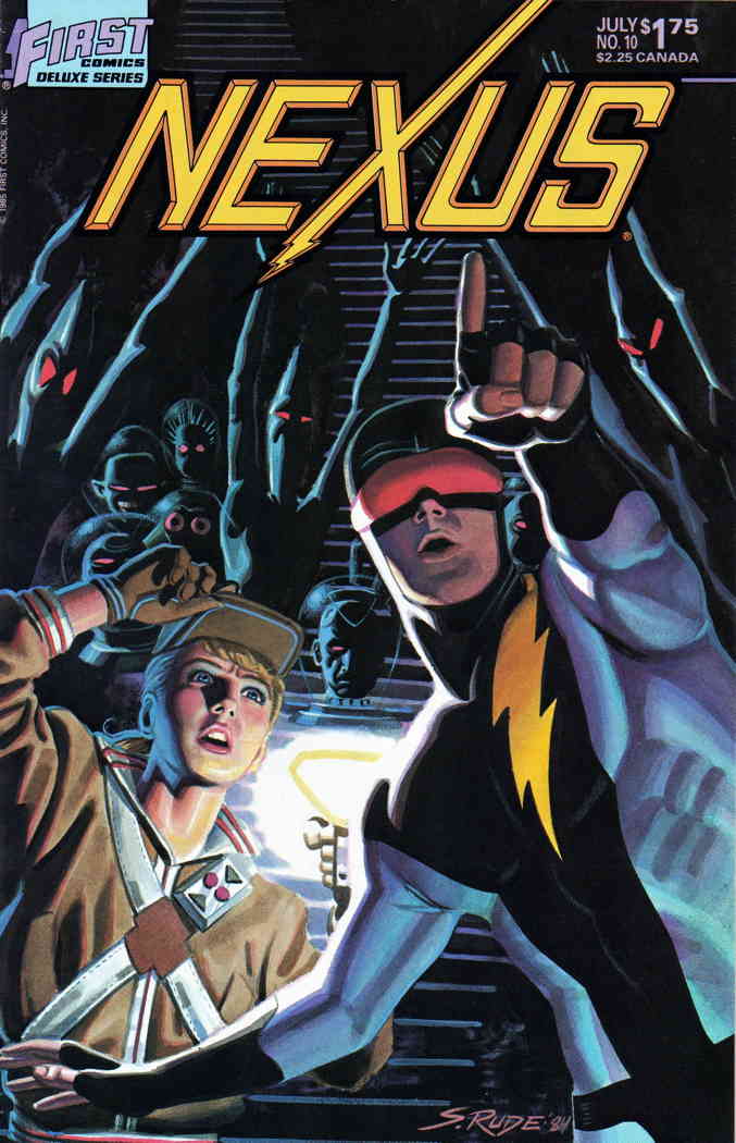 Item: Nexus (Vol. 2) #10 | Publisher: First | Cover Date: July 1985 | Writer: Mike Baron | Artist: Steve Rude, Bill Willingham | Cover Artist: Steve Rude | Storylines: Talking Heads; Tales of Dave | With Economy shi ... Read More