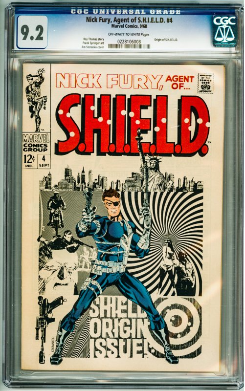 Nick Fury, Agent of SHIELD #4 (1968) CGC 9.2! OWW Pages!
