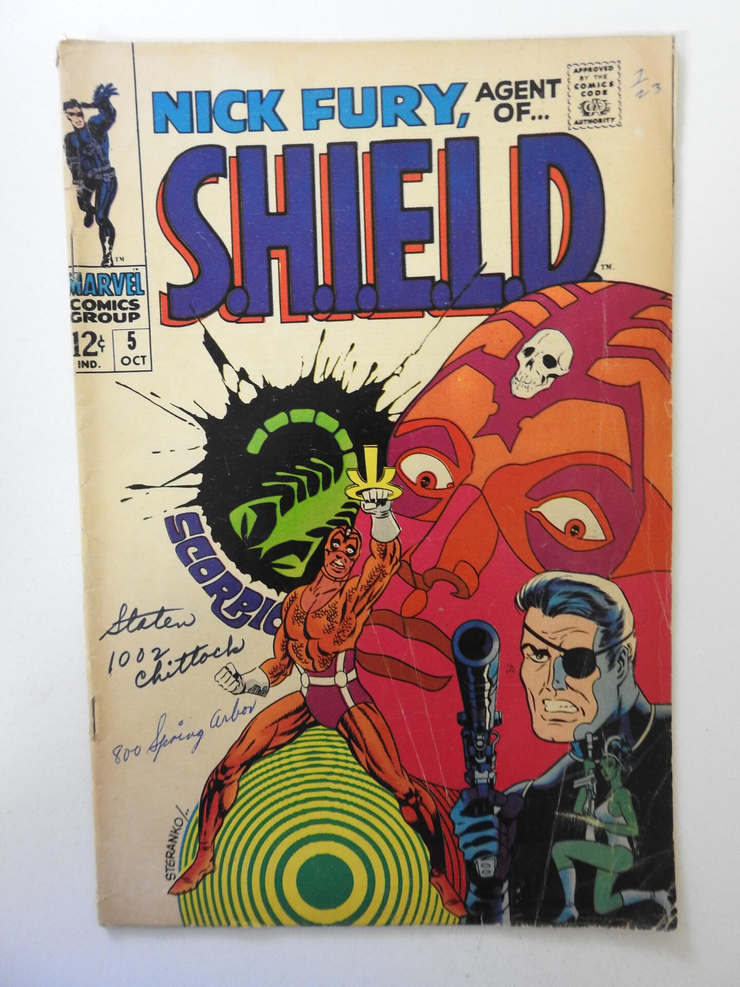 Nick Fury, Agent of SHIELD #5 (1968) VG- Condition! Ink on front cover