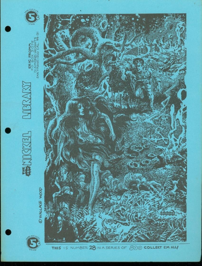 Nickel library #28-wally wood art-rare underground fn wally wood nickel library - single page fanzine - created by eric fromm and published by san francisco comic book co from the late 1960s into the early 1970s. Designed to be a 500 issue set. Each page has binder holes so the set could be collected in a notebook. Features the work of top underground comix artists, famous golden age comic books and newspaper comic strips. These originally sold for 5 cents each in a few comic book shops and are very hard to locate today. We are not sure if all 500 issues were printed. Does any one have a complete set? Title: nickel library issue: 28 grade: fn sku: u2-07-065