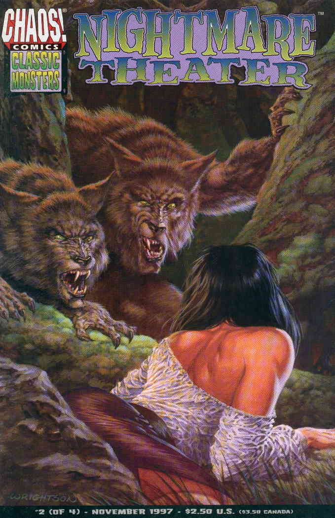 Item: Nightmare Theater #2 | Publisher: Chaos | Cover Date: November 1997 | Writer: Brian Pulido, Robert Loren Fleming, Drew Bittner | Artist: Fauve, Georges Jeanty, Mike Hoffman, Eric Powell | Cover Artist: Bernie Wrightson | Notes: Horror anthology | With Economy shipping, each additional comic ships for just 50 cents more to customers in the USA. This listing contains a stock photo and information from ComicBase™ and © Human Computing. The stock photo is for reference only. If you would like to see a photo of the actual item, please message us prior to purchasing.Seller Information