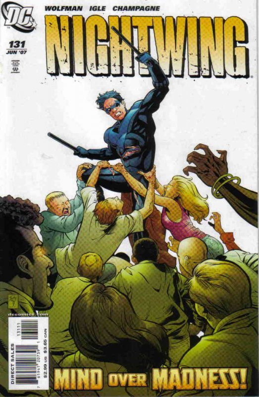 Item: Nightwing #131 | Publisher: DC | Cover Date: June 2007 | Writer: Marv Wolfman | Artist: Jamal Igle | Cover Artist: Jamal Ingle | Storylines: Bride and Groom, Part 3; The Engagement | With Economy shipping, each additional comic ships for just 50 cents more to customers in the USA. This listing contains a stock photo and information from ComicBase™ and © Human Computing. The stock photo is for reference only. If you would like to see a photo of the actual item, please message us prior to purchasing.Seller Information