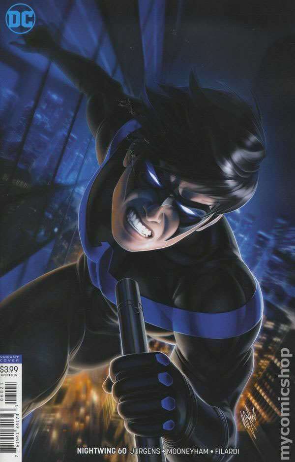Item: Nightwing (4th Series) #60A | Publisher: DC | Cover Date: July 2019 | Writer: Dan Jurgens | Artist: Chris Mooneyham | Cover Artist: Warren Louw | Storylines: City Ablaze, Part 2 | Notes: Variant Cover by Warren Louw | With Economy shipping, each additional comic ships for just 50 cents more to customers in the USA. This listing contains a stock photo and information from ComicBase™ and © Human Computing. The stock photo is for reference only. If you would like to see a photo of the actual item, please message us prior to purchasing.Seller Information