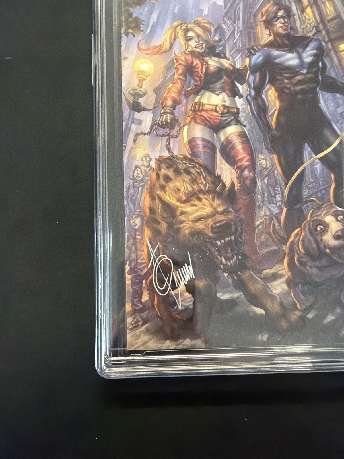 Grade: 9.8 Near Mint/MintThe product is a Nightwing #96 comic book variant cover signed by artist Alan Quah. Published by DC Comics in 2022, this single issue features characters such as Wonder Girl, Batman, Joker, and Harley Quinn within the DC Universe. Graded 9.8 Near Mint/Mint by Certified Guaranty Company (CGC), this modern age comic book is a highly collectible item for fans of action, superheroes, and adventure genres. With its unique cover art and personalized signature, this comic book is a prized addition to any comic book enthusiast's collection.