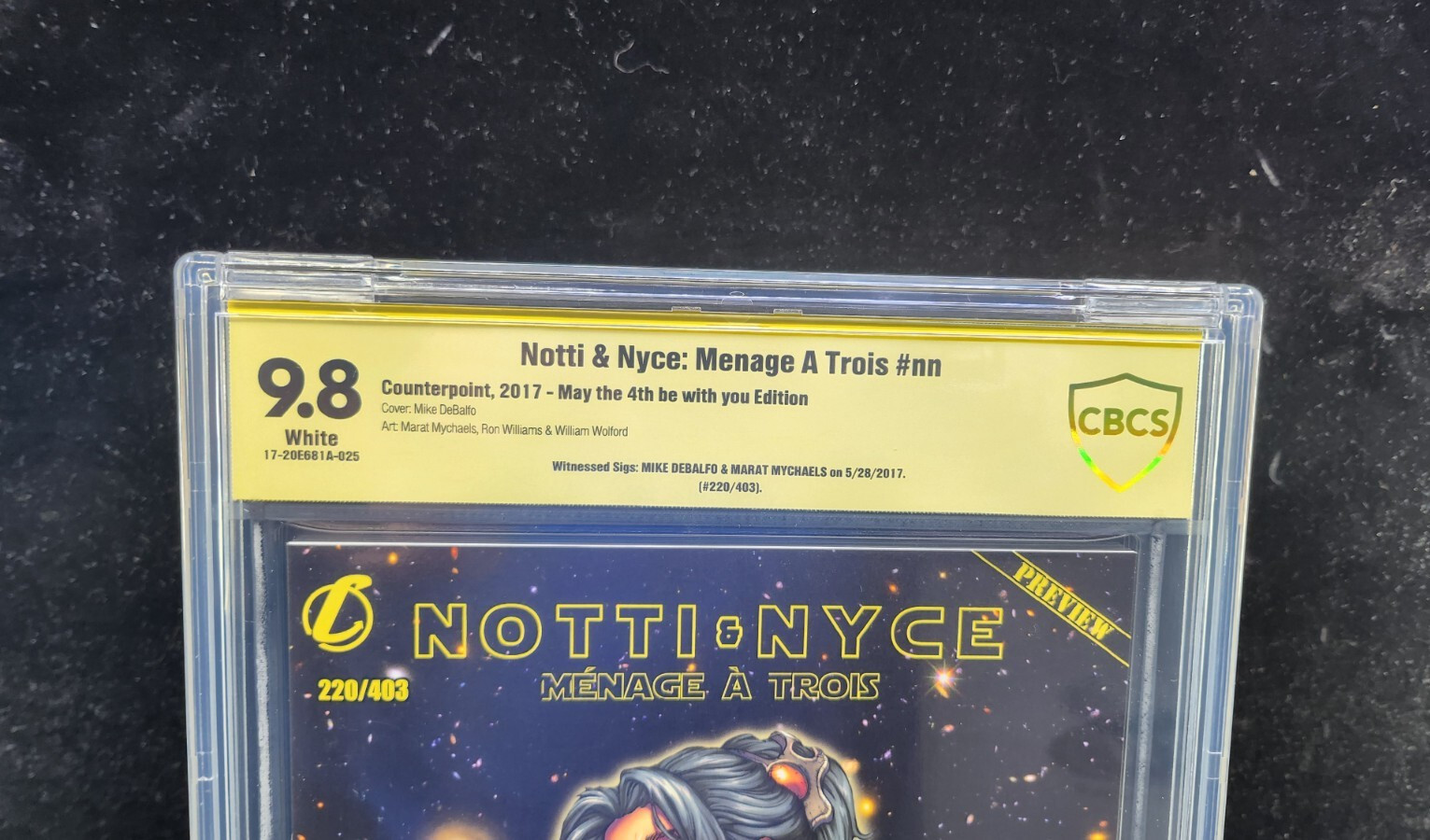 Condition: Limited to 403 Grade: 9.8 Near Mint/Mint Notti & Nyce: Menage A Trois #nn - Signed 2x - Star Wars Ed - CBCS 9.8 - 2017Size: 8" x 13"This item was uploaded by __LM__.If you have any specific questions o ... Read More