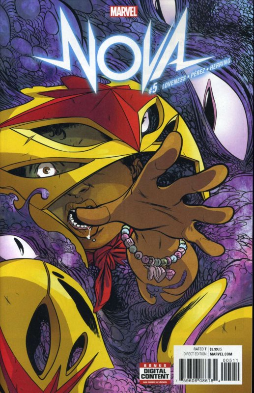 Item: Nova (7th Series) #5 | Publisher: Marvel | Cover Date: June 2017 | Writer: Jeff Loveness | Artist: Ramon K. Perez | Cover Artist: David Marquez | Appearances: Eva Alexander, Kaelynn Alexander, Many-Angled Ones ... Read More