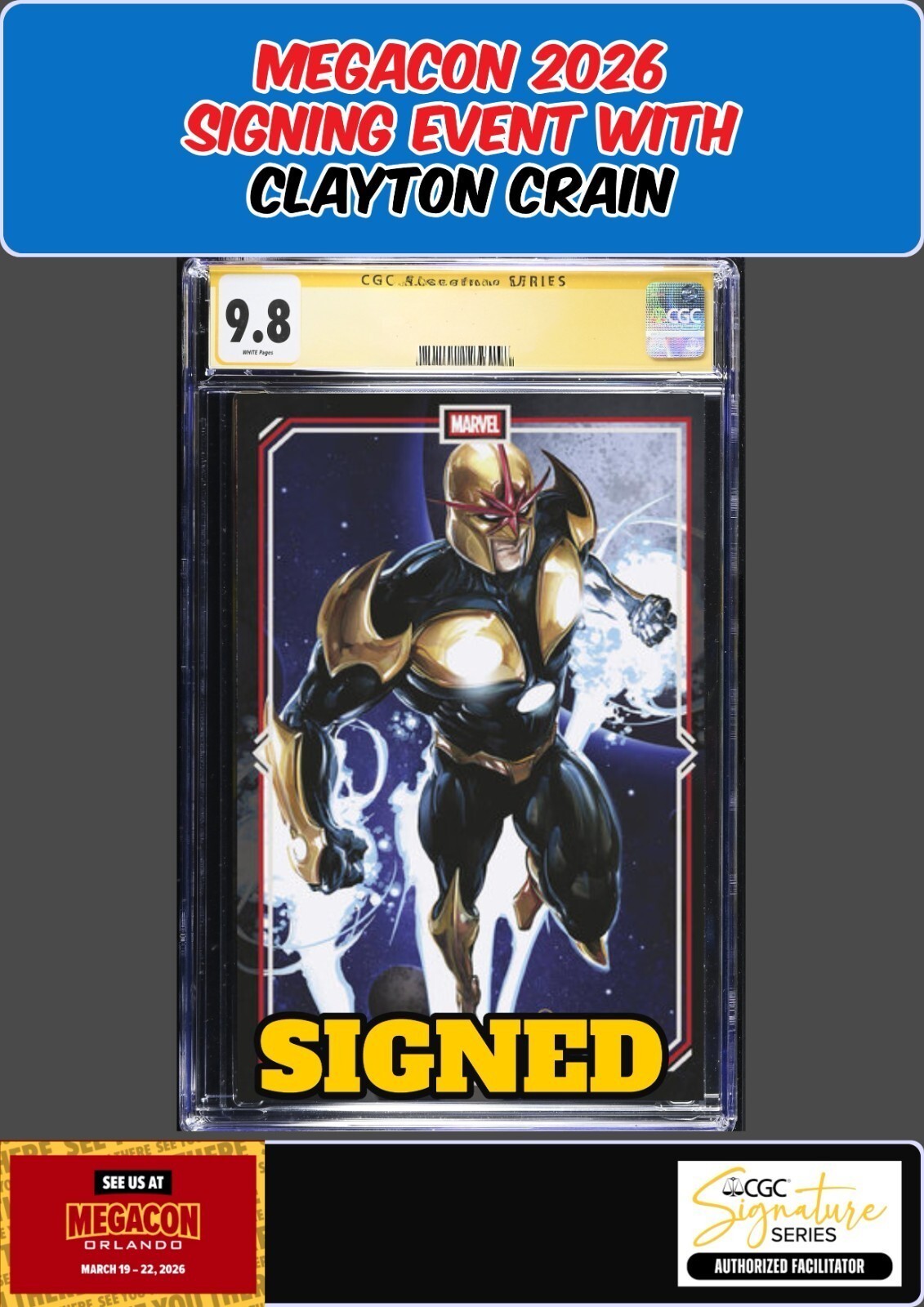 NOVA CENTURION #3 CGC 9.8 CLAYTON CRAIN SIGNED MEGACON PRESALE