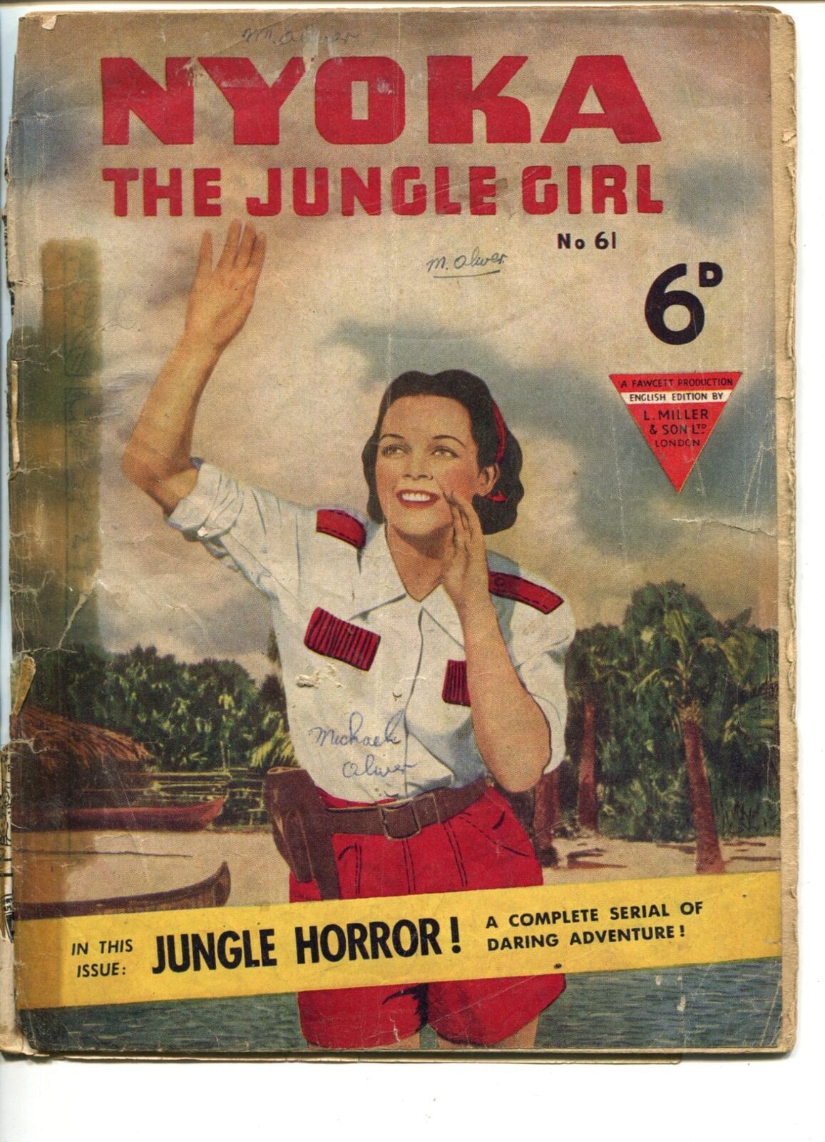 Nyoka the jungle girl #61 1950's-fawcett-photo cover-british variant-fr -british variant copy -photo cover -bad spine, tape grade: fr sku: u1-19-098