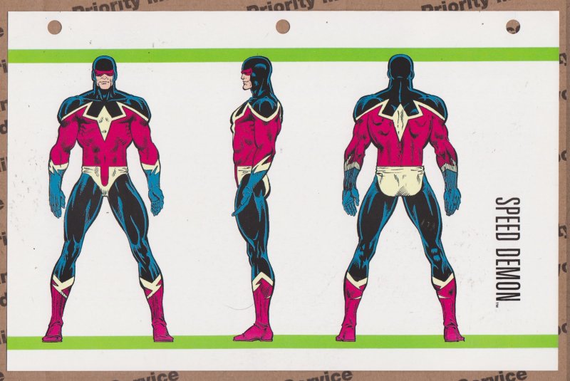 Official Handbook of the Marvel Universe Sheet- Speed Demon. Stats and a brief history of the character. Sheet is in VERY FINE condition