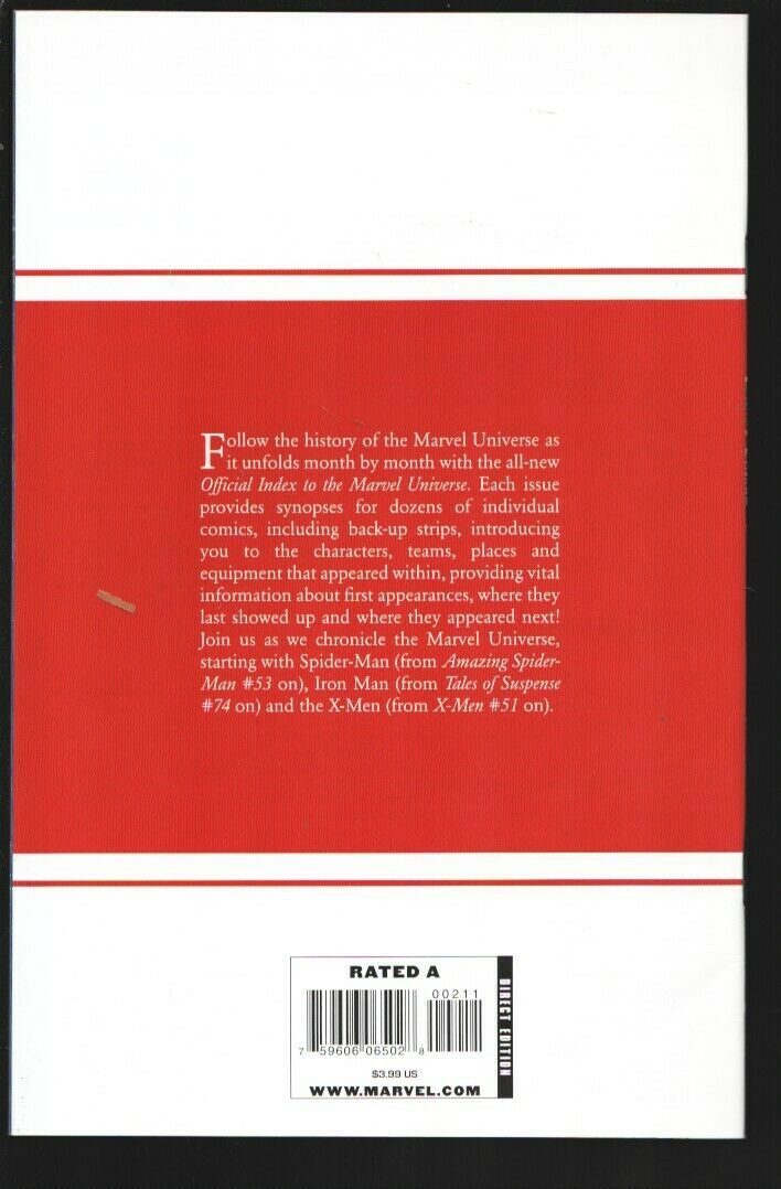 Official Index To The Marvel Universe Issue: 2 / Year: 2009 Condition: VF/NM-Spider-man-X-Men-Iron Man -Loaded with info & history Publisher: MarvelSku: U2-97-327 Over 100,000 mail orders processed! Buy with confidence.