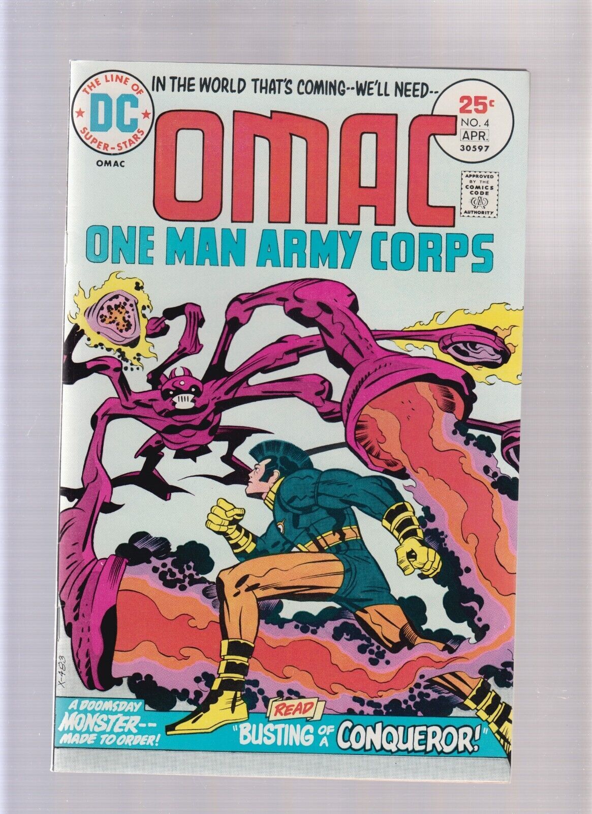 OMAC #4 - Story + Art Jack Kirby (9/9.2)Size: 7" x 10"This item was uploaded by __AS__.WE COMBINE SHIPPING!!! Either wait for us to send you an invoice after you commit to buy or, if it makes you pay right away, message us back and we'll refund the excess charge. Buy as many single comic books as you want for one low flat shipping rate in the United States! International will be charged exact according to size and weight. If you have any specific questions or requests, please ask us prior to ordering and we'll get back to you as soon as we can. If there are any problems with your order whatsoever, please message us before leaving feedback and we'll be happy to work with you to fix the situation! We ship worldwide, combine purchases, and charge exact shipping. The price may vary based on size, weight, and location. If you are automatically overcharged for shipping, message us and we'll be happy to revise the invoice or refund you the excess amount. If you have any questions regarding shipping, please message us. International Buyers - Please Note: Import duties, taxes, and charges are not included in the item price or shipping cost. These charges are the buyer's responsibility. Please check with your country's customs office to determine what these additional costs will be prior to bidding or buying. Payment can be made by PayPal and credit cards directly. 120,000+ items in total in my Hip store! Frequently Asked Questions: When are your operation hours?Our in office hours are Monday - Friday, 11 am - 8 pm. We are not open on weekends, so if you send us a request on Friday evening we won't get back to you until Monday afternoon. Please don't take it as us ignoring you! We will work on your request Monday and get back to you as soon as we can. Also, if you order from us on a Friday evening or Saturday morning we won't start processing your order until we open on Monday. That means on Monday it will be pulled and prepped for shipping, then picked up by the postman on Tuesday morning.When will you ship my item? The tracking hasn't moved.We realize you're eager to get your item, so if the tracking hasn't moved in a few days please don't be concerned. We give the postman a lot of packages daily, sometimes as many as 100, so he does not scan each item for us upon pickup as he says it would be too time consuming for him to do so. If you get a tracking number from us, that almost always means your item was picked up by the postman the next business day. The USPS is also imperfect. There are times when the tracking won't even show movement until it's in your area's regional distribution center. This is normal in our experience. Is the item pictured the exact one for sale?Yes! We don't use stock images and go through great lengths to scan or photograph everything we list. The item pictured is exactly what you should receive UNLESS it is a fixed price listing with multiple items available. Can you issue a COA? We can, upon request. Please make sure you leave us a note while checking out and shoot us a message immediately after requesting one, just to be sure. How do you grade?Grading is very subjective, but we are professionals with decades of grading experience between us who try the best we can to accurately describe the condition of the items we list. Anthony is an Overstreet Comic Book Price Guide Advisor Please see the grading chart below for a breakdown of how we grade: NOTE: We don't grade any raw books higher than 9.2, as once you go higher than that grading gets really subjective. If you buy a NM book from us, it may very well be higher than 9.2 but we play it safe and grade conservatively. 9.2 NM Near Mint 9.0 VF/NM Very Fine/Near Mint 8.5 VF+ Very Fine+ 8.0 VF Very Fine 7.5 VF- Very Fine- 7.0 FN/VF Fine/Very Fine 6.5 FN+ Fine+ 6.0 FN Fine 5.5 FN- Fine- 5.0 VG/FN Very Good/Fine 4.5 VG+ Very Good+ 4.0 VG Very Good 3.5 VG- Very Good- 3.0 GD/VG Good/Very Good 2.5 GD+ Good+ 2.0 GD Good 1.8 GD- Good- 1.5 FR/GD Fair/Good 1.0 FR Fair 0.5 PR PoorHow do you ship comics? We ship in rigid cardboard mailers to protect your comic book from the worst the mail system has to offer. Price varies based on the number of books you purchase, but we try to keep costs as low as we can and charge exact shipping. If it looks unusually high to you please send us a message and we'll be happy to double check for you. Do you combine shipping? Yes, of like items. Such as: several comics can fit in one cardboard mailer, as can more than one record. Multiple art pages can easily be combined because they are light and thin. Where combined shipping differs is with size and weight. For instance, two statues require a much bigger box. Same goes for CGCs, as the package gets bigger and heavier as you go. Do you ship well? I've had some bad experiences... You needn't worry; we are professionals who value your business and want your item to arrive safely as much as you do. I have been collecting for over 30 years. I send out items the way I would like to receive them. The tracking says my item is "OUT FOR DELIVERY" in New Jersey. Why is that?If the tracking indicates that the item is "OUT FOR DELIVERY" in NJ don't worry, it's just what the tracking says when it's carried over from the postman to the sorting center. This is normal for our Post Office and will not impact you receiving your item in a timely matter.What is the difference between a RUN and a LOT?Good question. A RUN will be a collection of consecutive issues with no breaks in between them. If it says RUN of #s 1 - 50 you will receive 50 consecutive comics. A LOT will be within a certain range, so a 50pc LOT will not contain consecutive books.I changed my mind after successfully winning the auction or fixed price listing, will you cancel the transaction? Please only bid or hit BUY IT NOW if you are willing to follow through and pay for the item, we will not cancel the transaction. As a seller, Hip penalizes us every time we cancel an order, so it is detrimental to ou
