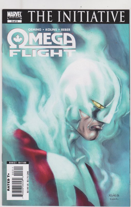 Omega Flight #3 by Marvel Comics copyright 2007. I have graded the comic book, using the Overstreet Grading Guide, at FINE/VERY FINE with the following defects: Light stress marks along the spine. The corners are rounded. There is light yellowing of the pages.Seller Information