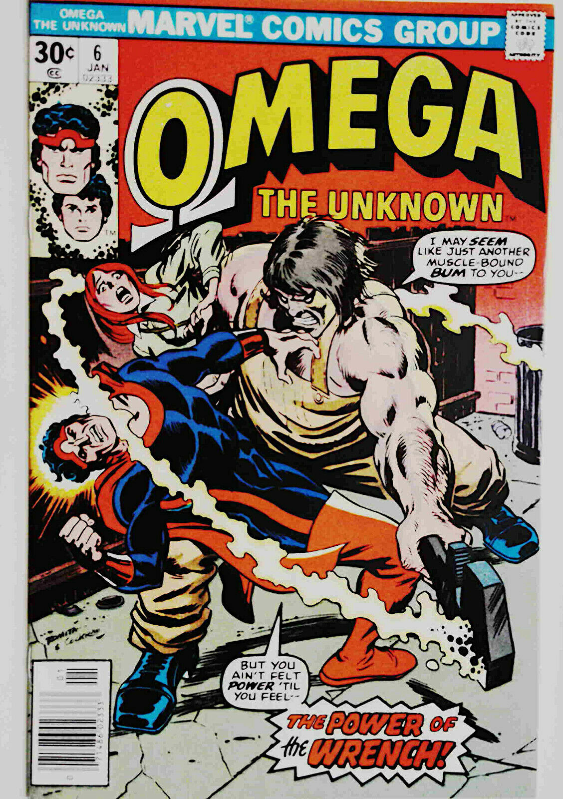Cover by John Romita and Dave Cockrum. A Tug of the Wrench!, script by Mary Skrenes and Steve Gerber, art by Jim Mooney, Mike Esposito, and Mike Esposito; Omega the Unknown battles The Wrench, who is more than just another muscle-bound bum. 36 pgs
