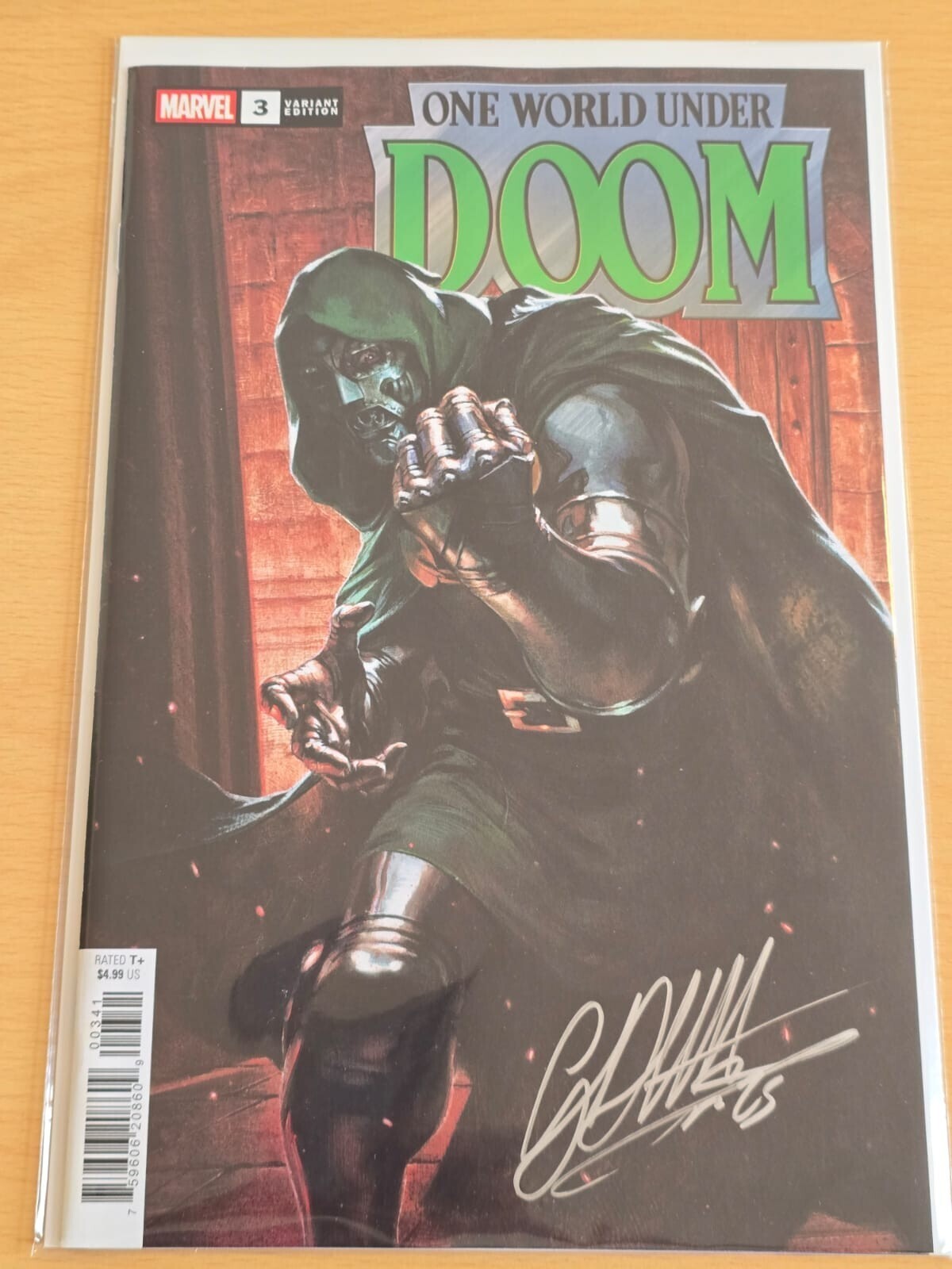 ONE WORLD UNDER DOOM #3 MARVEL 2025 GABRIELE DELL'OTTO VARIANT SIGNED W/ COA NM