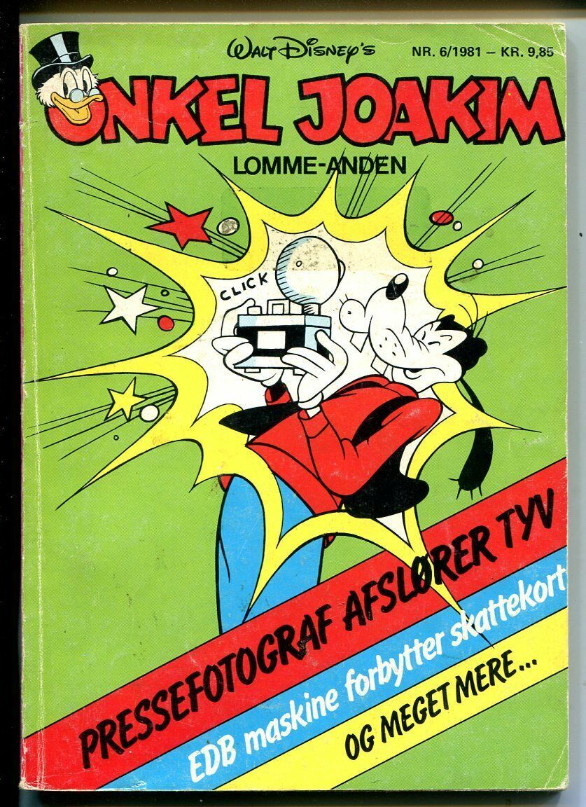 Onkel Joakim Issue: 6 / Year: 1981 Condition: G/VG-Danish Comic Book features the famous Walt Disney character Uncle Scrooge, who was created by artist Carl Barks -Mickey Mouse, Donald Duck, and other Disney Characters -Size is about 5 1/4 X 7 Publisher: DisneySku: CTR-82-102 Over 100,000 mail orders processed! Buy with confidence.