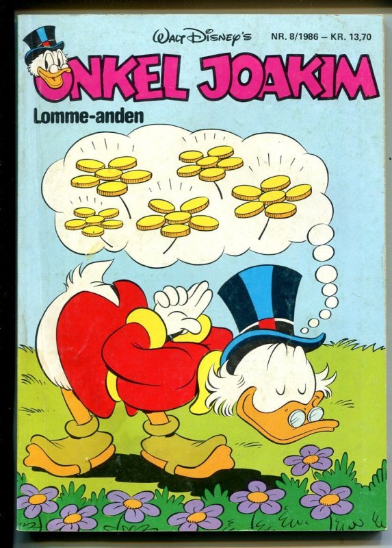 Grade: VG Onkel Joakim #8 1986-Disney-Danish-Uncle Scrooge-Carl Barks-Mickey Mouse-VG -Danish Comic Book features the famous Walt Disney character Uncle Scrooge, who was created by artist Carl Barks -Mickey Mouse, ... Read More