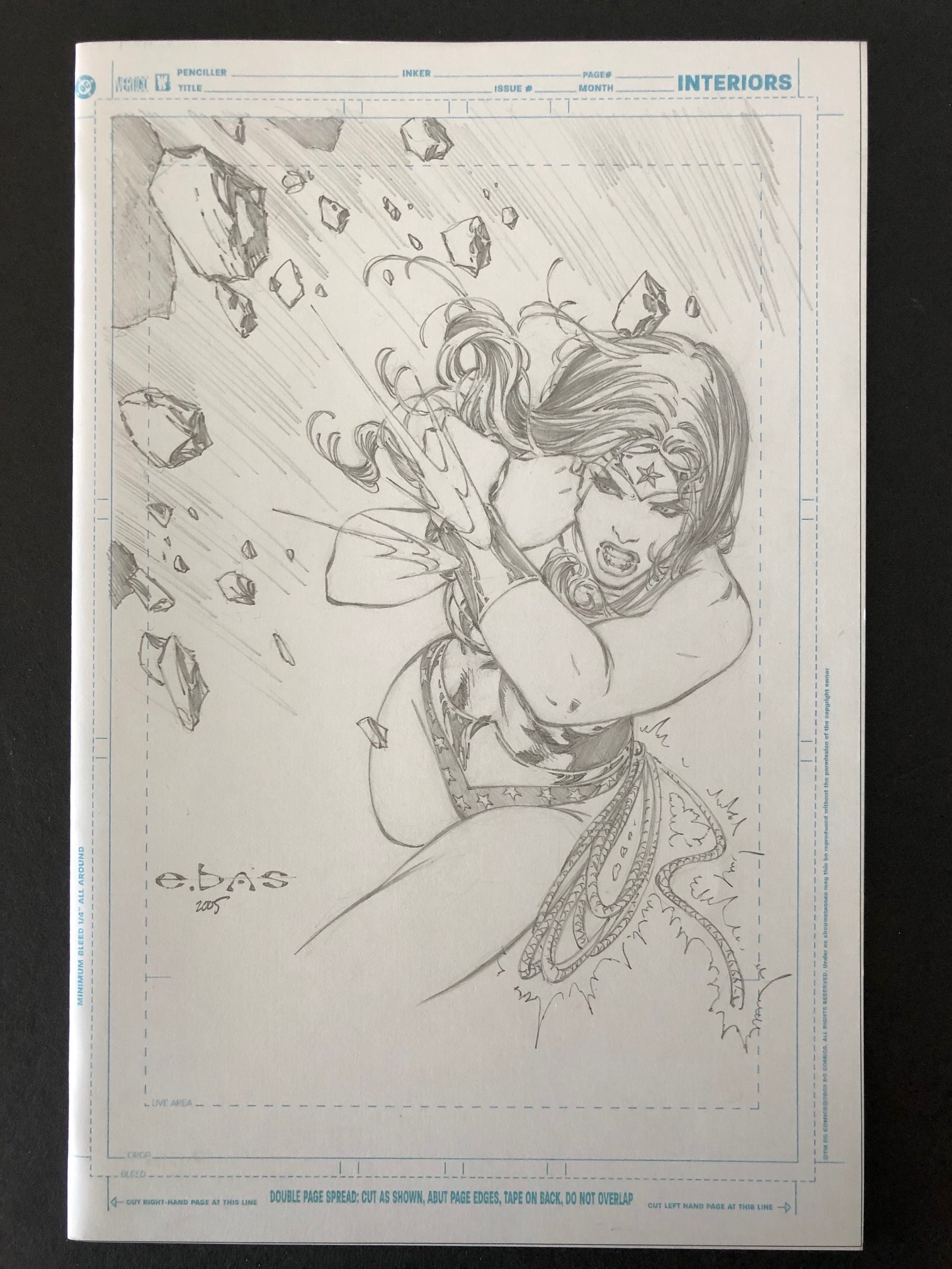 Original Eric EBAS Basaldua Wonder Woman Mockup Sketch on DC Cover Template