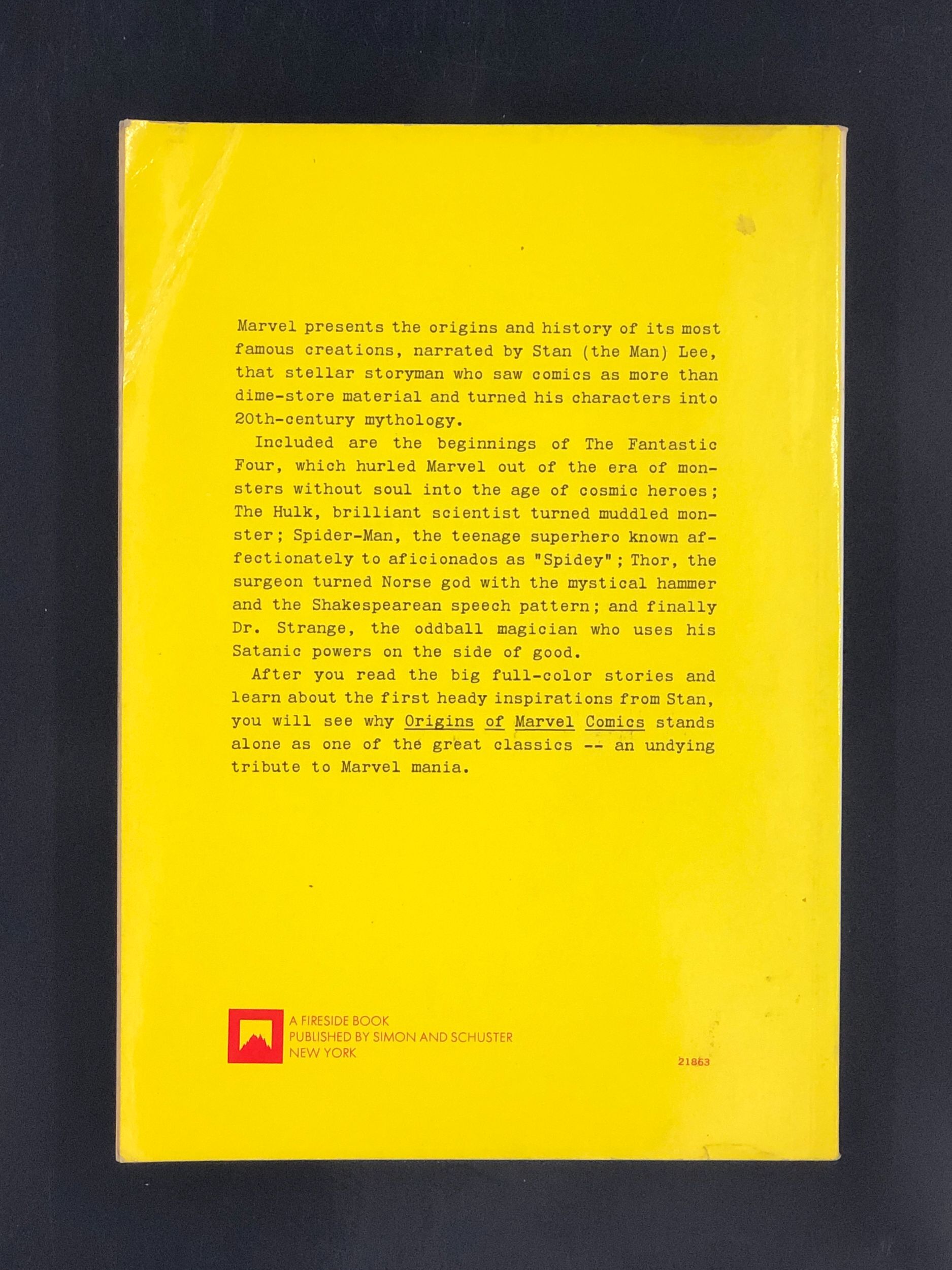 Origins of Marvel Comics by Stan Lee (1974) Fireside / Simon & Schuster