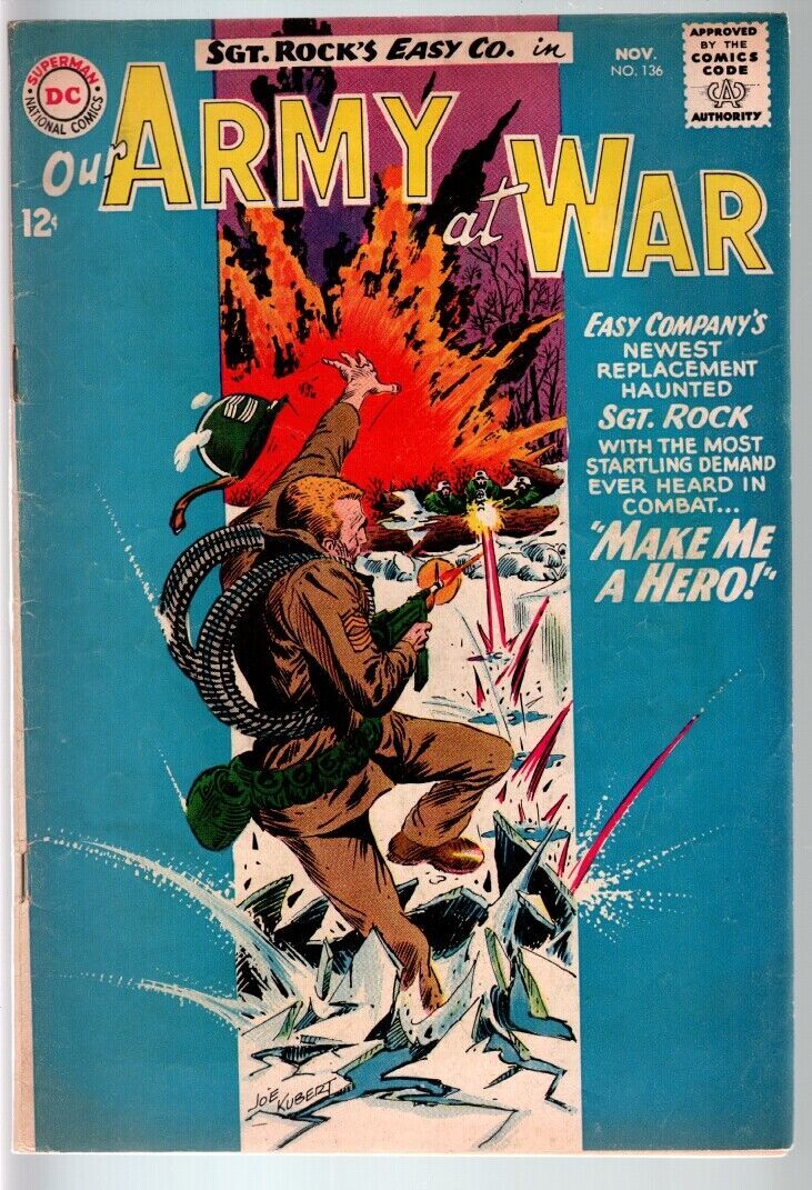 Our army at war #136 1963-dc war comic-sgt. Rock-vg vg the original dc war comic book. Our army at war was filled with violent, action-packed tales of battle and featured many of the best comic book artists from this time period. Sm pc tape inside spine. 1963 grade: vg sku: u14-21-134