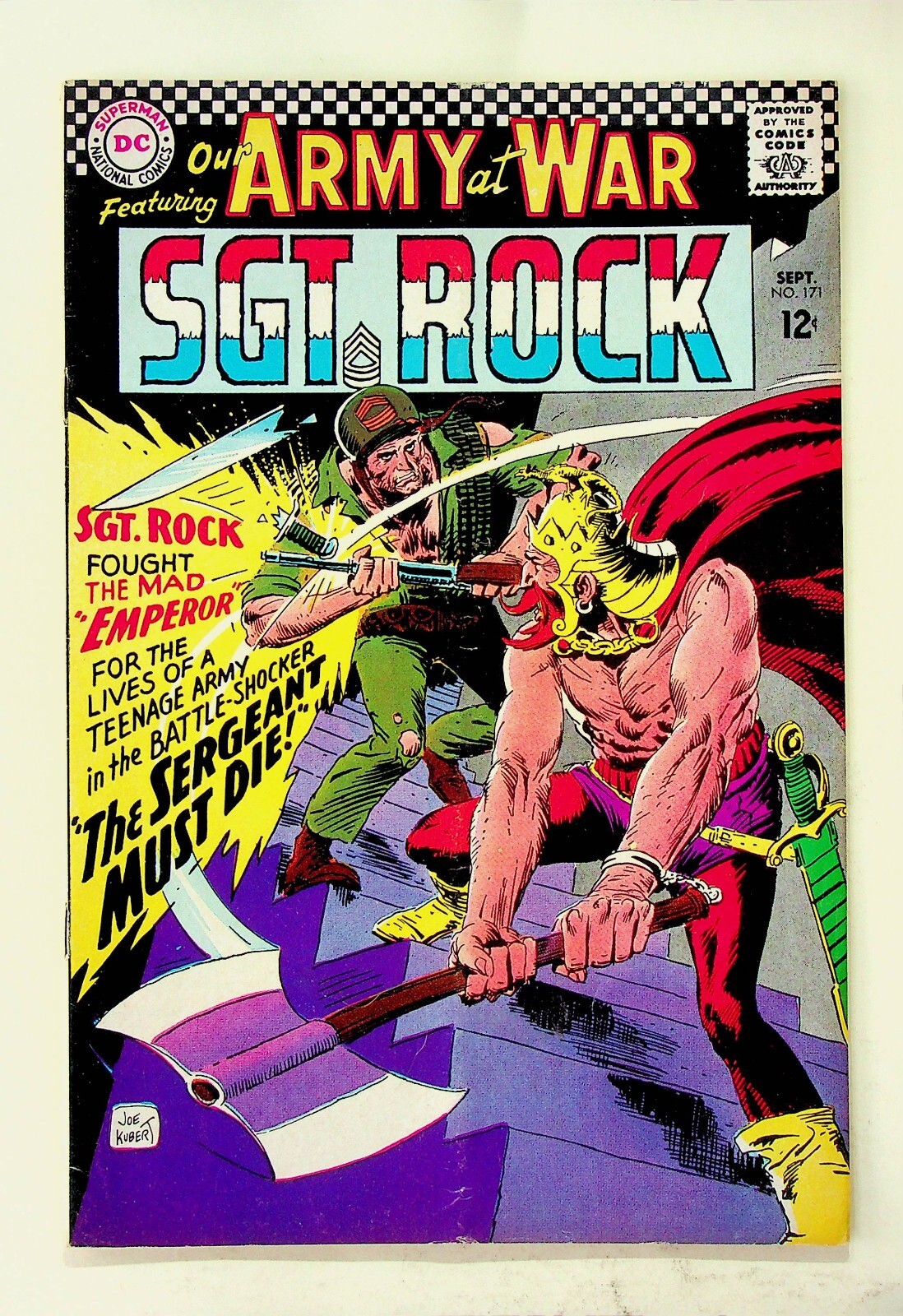 Grade: 4.0 Very GoodThis is a comic of Our Army at War No. 171 published by DC Comics in Sep., 1966. The grade is probably at least a Very Good but I will leave that up to the buyer to determine from the scans.The pictures are of the actual copy being auctioned. The pages are complete and intact The comic book has been stored bagged and boarded in a climate controlled environment in a smoke free home.If you would like more information, please feel free to ask. Please check out our other listings for more interesting items. I combine shipping whenever possible. All items are well packed and sent by USPS Ground Advantage Mail.