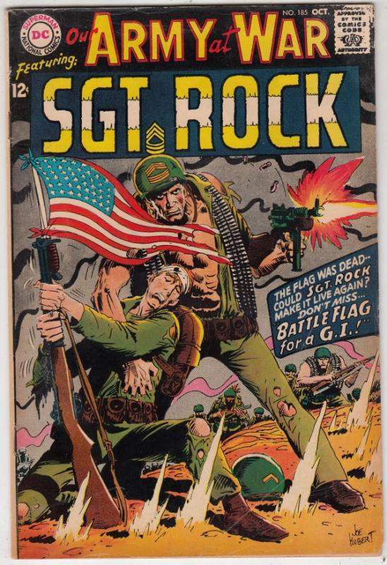 Our Army at War #185 - "Battle Flag for A G.I." COVER - Joe Kubert American Flag! ARTIST - Russ Heath and Jack Abel {{Grade Synopsis}} Characters Easy Company, Sgt. Rock, Nazis, Sgt. Rock Stories "Battle Flag fo ... Read More