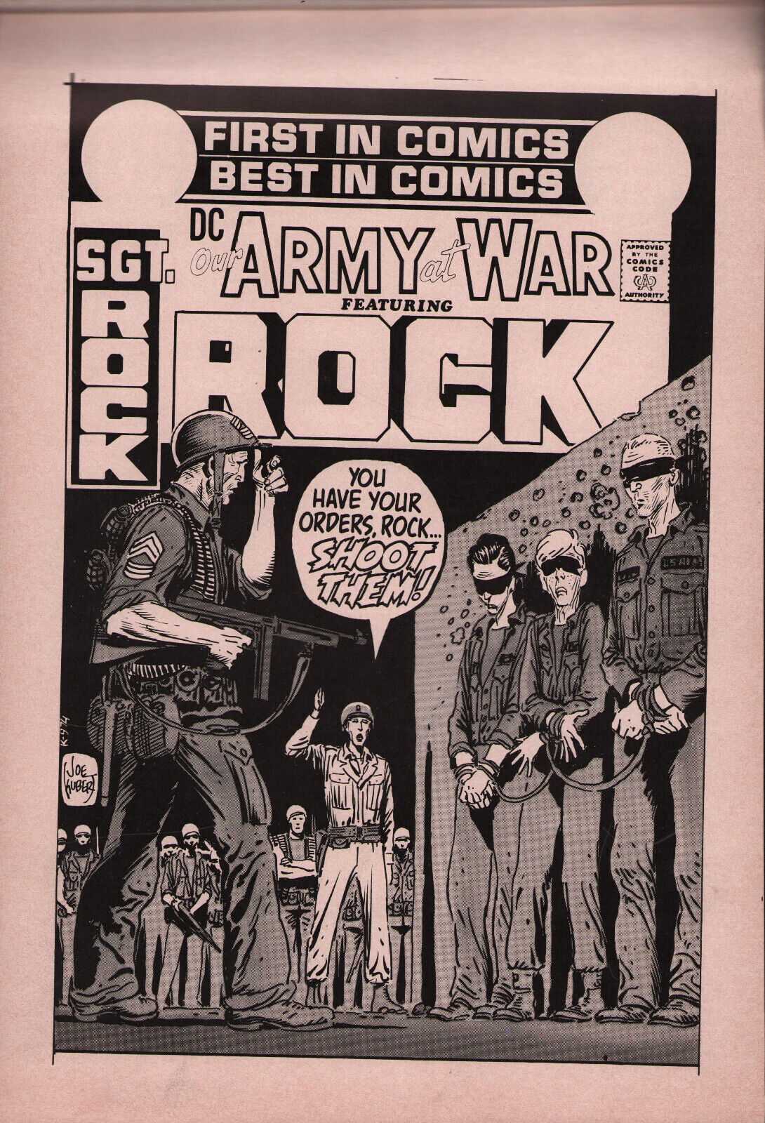 Our Army At War #248 Cover Color Proof & Separations - With Joe Kubert NotesSize: 8.25" x 13"This item was uploaded by RV.If you have any specific questions or requests, please ask us prior to ordering and we'll get back to you as soon as we can. If there are any problems with your order whatsoever, please message us before leaving feedback and we'll be happy to work with you to fix the situation!We ship worldwide, combine purchases, and charge exact shipping. The price may vary based on size, weight, and location. If you are automatically overcharged for shipping, message us and we'll be happy to revise the invoice or refund you the excess amount. If you have any questions regarding shipping, please message us.International Buyers - Please Note: Import duties, taxes, and charges are not included in the item price or shipping cost. These charges are the buyer's responsibility. Please check with your country's customs office to determine what these additional costs will be prior to bidding or buying. Payment can be made by PayPal and credit cards directly. 120,000+ items in total in my Hip store! Frequently Asked Questions: When are your operation hours?Our in office hours are Monday - Friday, 11 am - 8 pm. We are not open on weekends, so if you send us a request on Friday evening we won't get back to you until Monday afternoon. Please don't take it as us ignoring you! We will work on your request Monday and get back to you as soon as we can. Also, if you order from us on a Friday evening or Saturday morning we won't start processing your order until we open on Monday. That means on Monday it will be pulled and prepped for shipping, then picked up by the postman on Tuesday morning.When will you ship my item? The tracking hasn't moved.We realize you're eager to get your item, so if the tracking hasn't moved in a few days please don't be concerned. We give the postman a lot of packages daily, sometimes as many as 100, so he does not scan each item for us upon pickup as he says it would be too time consuming for him to do so. If you get a tracking number from us, that almost always means your item was picked up by the postman the next business day. The USPS is also imperfect. There are times when the tracking won't even show movement until it's in your area's regional distribution center. This is normal in our experience. Is this original artwork? Yes! I am a professional comic book art dealer with 20+ years experience. The image pictured is one of a kind original artwork unless otherwise described. Can you issue a COA? We can, upon request. Please make sure you leave us a note while checking out and shoot us a message immediately after requesting one, just to be sure. What is your base shipping for art? $10 for Domestic, International varies depending on location. Please use Hip's shipping calculator for specifics. How do you ship comics?We ship in rigid cardboard mailers to protect your comic book from the worst the mail system has to offer. Price varies based on the number of books you purchase, but we try to keep costs as low as we can and charge exact shipping. If it looks unusually high to you please send us a message and we'll be happy to double check for you. What is your base shipping for CGC comics? Domestic for CGCs are $10 for the first and $5 for each additional one you add. Do you combine shipping? Yes, of like items. Such as: several comics can fit in one cardboard mailer, as can more than one record. Multiple art pages can easily be combined because they are light and thin. Where combined shipping differs is with size and weight. For instance, two statues require a much bigger box. Same goes for CGCs, as the package gets bigger and heavier as you go. Do you ship well? I've had some bad experiences... You needn't worry; we are professionals who value your business and want your item to arrive safely as much as you do. I have been collecting for over 30 years. I send out items the way I would like to receive them. The tracking says my item is "OUT FOR DELIVERY" in New Jersey. Why is that?If the tracking indicates that the item is "OUT FOR DELIVERY" in NJ don't worry, it's just what the tracking says when it's carried over from the postman to the sorting center. This is normal for our Post Office and will not impact you receiving your item in a timely matter.Have these CGCs had any previous owners? No. I have personally sent in almost all of these to CGC and had them returned to me, offering them fresh to the market for the 1st time. I changed my mind after successfully winning the auction or fixed price listing, will you cancel the transaction? Please only bid or hit BUY IT NOW if you are willing to follow through and pay for the item, we will not cancel the transaction. As a seller, Hip penalizes us every time we cancel an order, so it is detrimental to our business to do so. Therefore if you will not pay, then you'll have to let Hip cycle this to an "unpaid item" and accept whatever action Hip deems necessary. 120,000+ items in total in my Hip store! AS SEEN ON TV : I have been buying and selling artwork and comics for about 20 years. If you are new to buying art or comics feel free to ask any questions that you may have. 120,000+ items in total in my Hip store! Small, Regular, and Large Portfolios available; see my Hip store!Seller Information