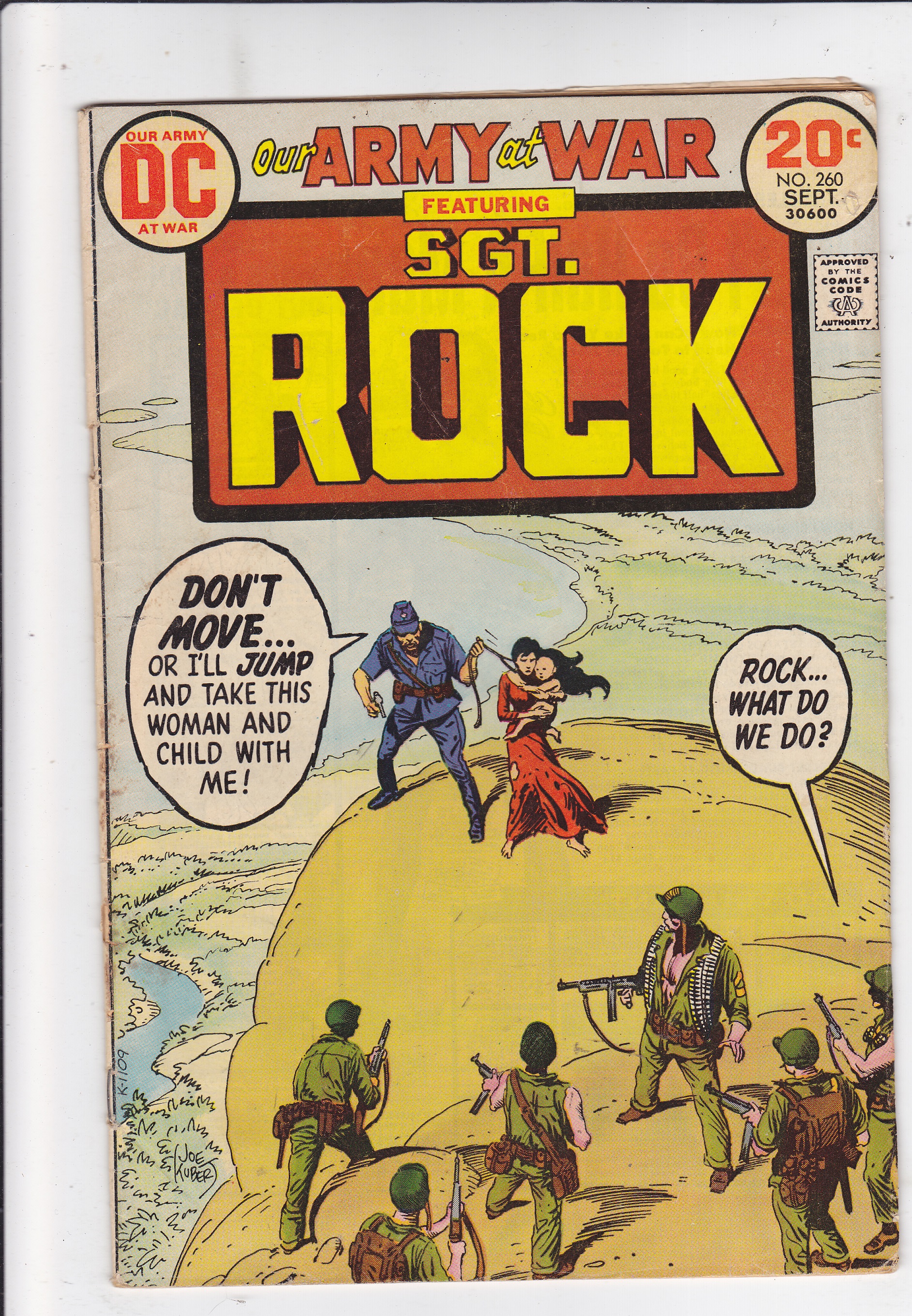 Our Army at War #260 by DC Comics copyright 1973. I have graded the comic book, using the Overstreet Grading Guide at GOOD+ with the following defects: Light stress marks along the spine. The corners are rounded. There is a fold in the upper and lower right corners. There are wrinkles through out the cover. There is some yellowing of the pages.Seller Information