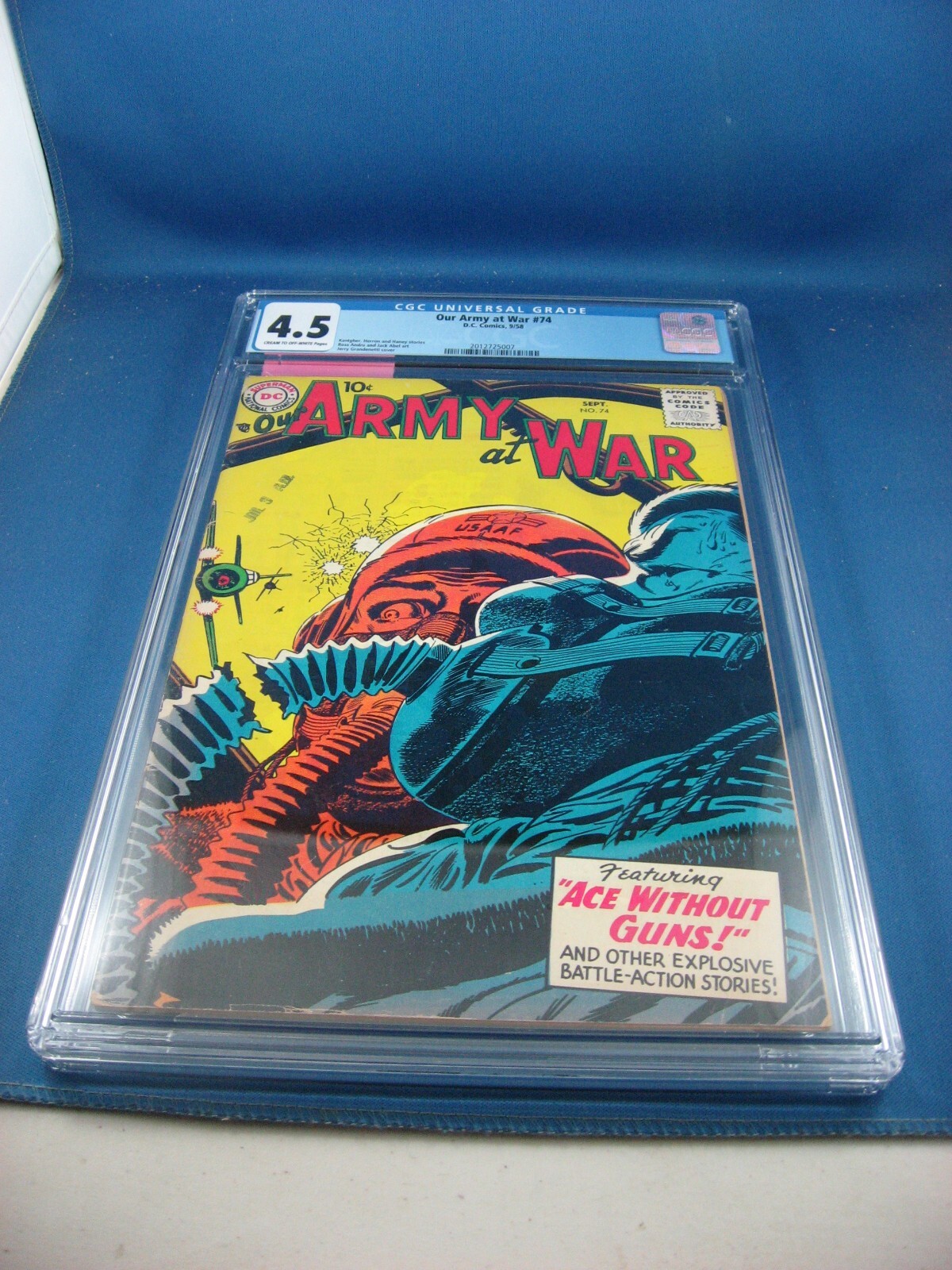 Grade: 4.5 Very Good+ EEGABEEVA is back on line!THIS ITEM: OUR ARMY AT WAR 74 CGC 4.5Shipping is actual post office cost unless otherwise specified. We ship worldwide and work with overseas buyers to minimize shipp ... Read More