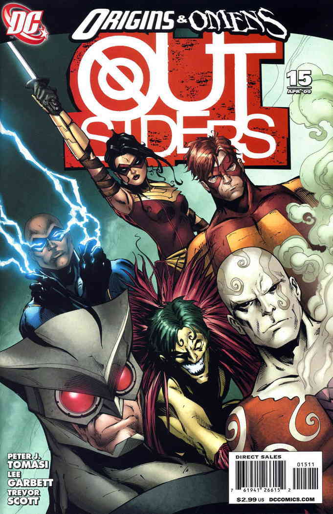 Item: Outsiders, The (4th Series) #15 | Publisher: DC | Cover Date: April 2009 | Writer: Peter J. Tomasi | Artist: Lee Garbett | Cover Artist: Lee Garbett | Appearances: Geo-Force, Black Lightning, Katana, Metamorph ... Read More