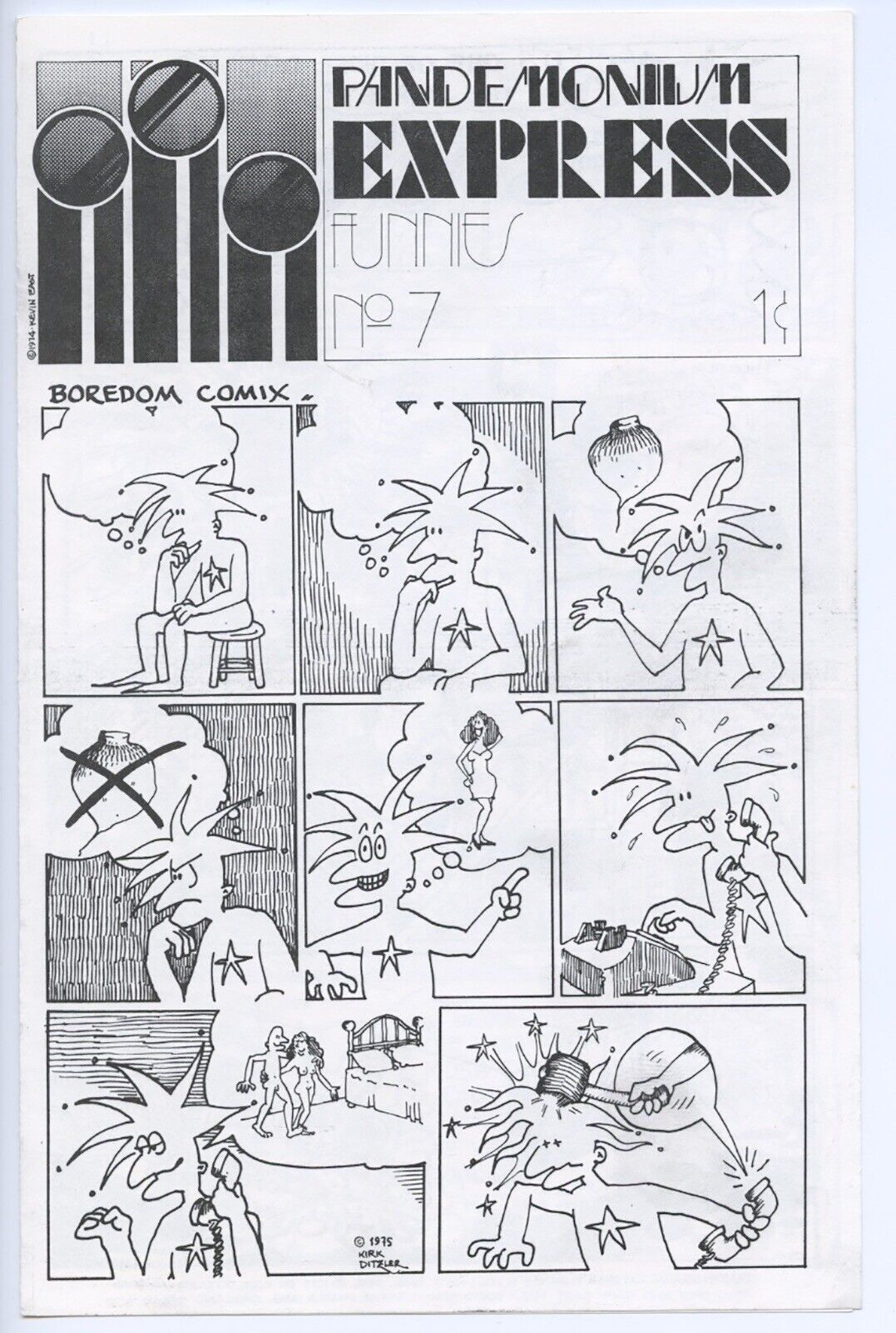 PANDEMONIUM EXPRESS FUNNIES #7 - Digest-size comix - 1st printing - High grade! src="" border="0" href="" target="_blank" src="" border="0" DESCRIPTION:This incredible, unrestored copy is complete, fully readable and has both covers attached. This digest-size comix has very high cover gloss, a very tight spine and white pages. All issues of this title are very tough to find. The book is sent in a mylar sleeve with backing board. Condition is a very conservatively graded 9.2, NM-. *You must be 18 years of age or older to bid on this auction*SHIPPING INFORMATION:Combine our auctions and $ave on shipping!Please remember that Media Rate may take up to 4 weeks delivery.FEDEX services available.Nevada residents, please add sales tax.We accept PayPal, MasterCard, Visa, Discover, American Express.NOTES AND FINE PRINT: Welcome to Redbeard's Book Den! For most that have collected comic books for the last 30 years, you have probably heard of us. Redbeard's founder and current owner is Ron Pussell (aka Redbeard), senior Overstreet Price Guide consultant since 1980.REDBEARD'S BOOK DENPO Box 217Crystal Bay, NV 89402-0217 _gsrx_vers_841 (GS 7.0.16 (841)) Track Page Views WithAuctiva's FREE Counter