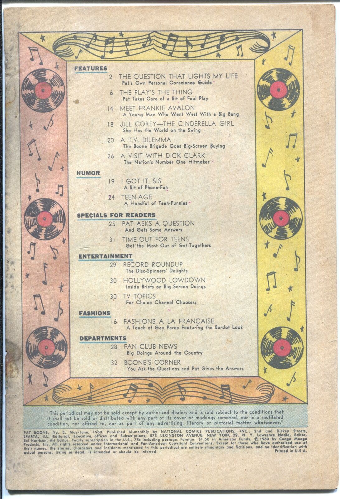 Pat Boone Issue: 5 / Year: 1960 Condition: P-Photo cover -Low grade copy, front cover missing, back cover detached Publisher: DCSku: U2-25-567 Over 100,000 mail orders processed! Buy with confidence.
