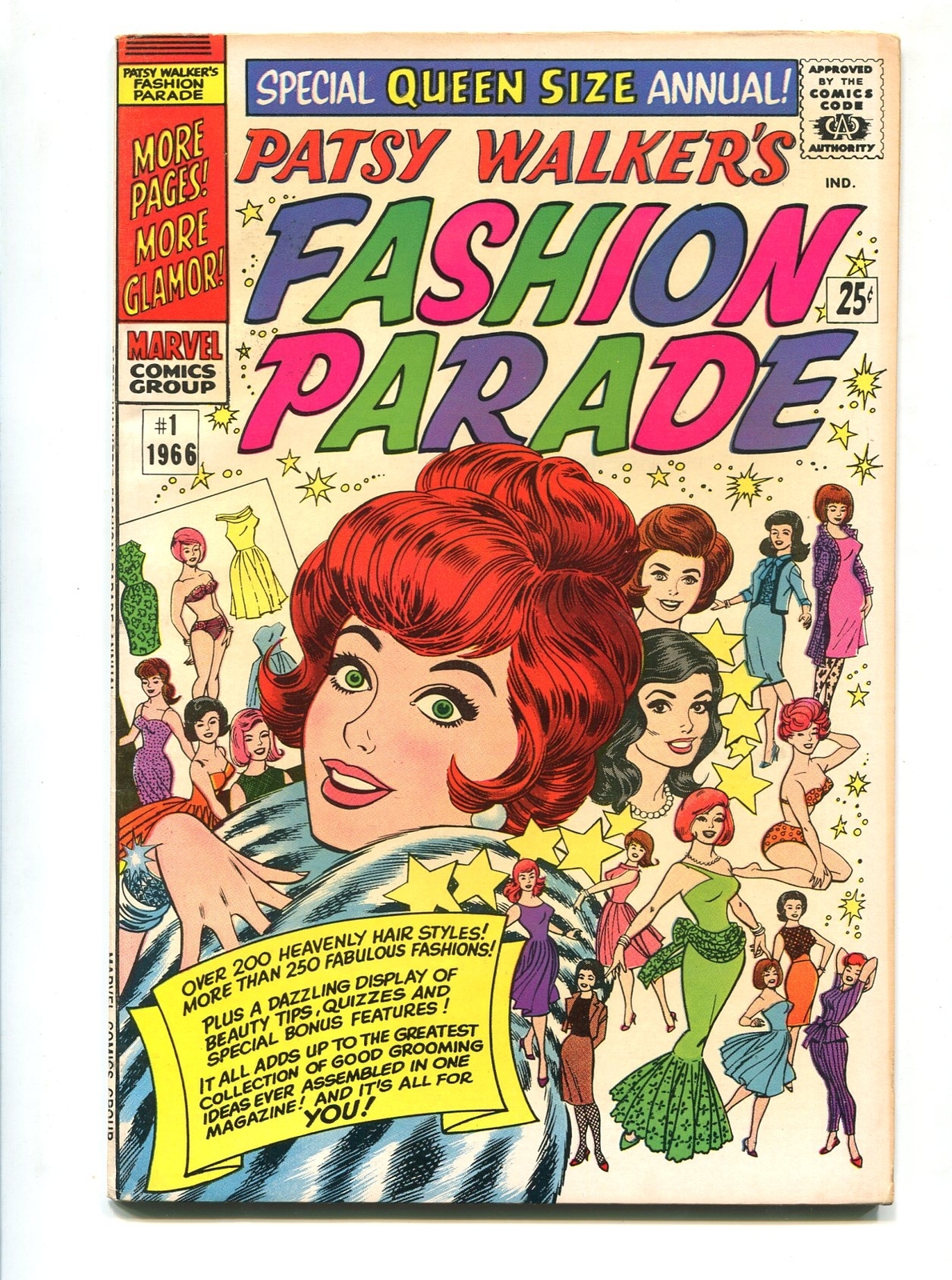 Grade: FN/VFPatsy walker's fashion parade #1 1965-marvel-f/vf giant issue- queen size annual. Paper dolls. Glossy cover. Grade: fn/vf sku: ck40-060